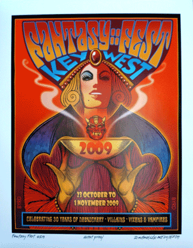 Key West Fantasy Fest: 30th Anniversary 2009 by David Byrd Ltd Edition numbered and signed on Archival Luster Paper (paper size: 17 x 22, image size: 14 3/4 x 19